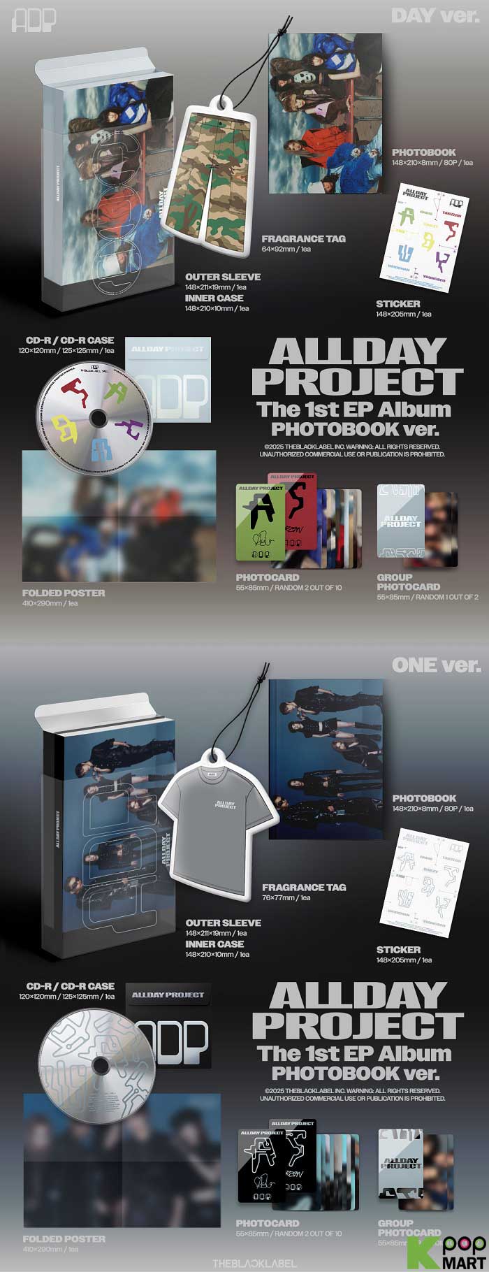 * Dış Kılıf + İç Kutu + CD + Fotoğraf Kitabı (80 Sayfa) + Koku Etiketi + Çıkartma + Rastgele Fotoğraf Kartı (2 Adet Ortak, 1 Adet Grup) + Katlanmış Poster (Paket Üzerinde)