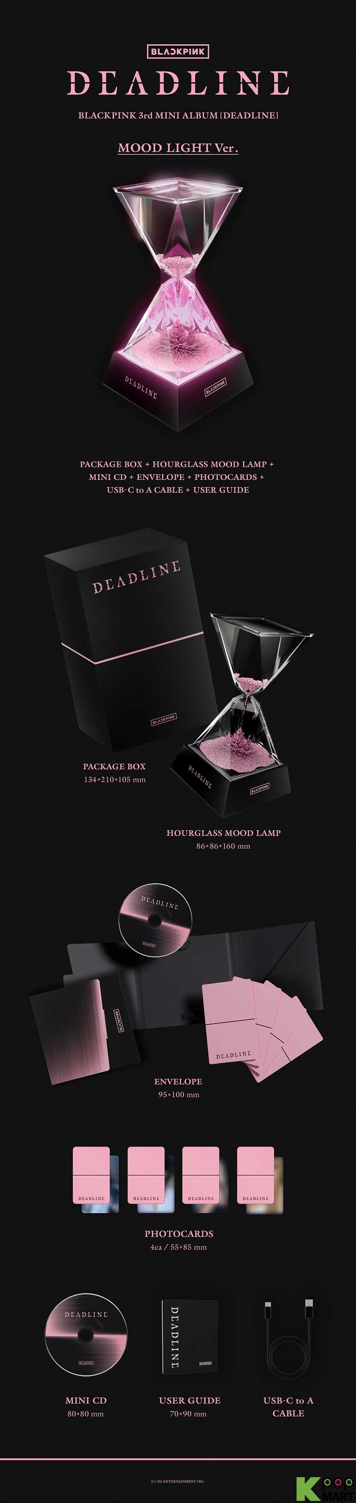 * Package Box + Hourglass Mood Lamp + Mini CD + Envelope + Photocard (4 P) + USB-C t0 A Cable + User Guide