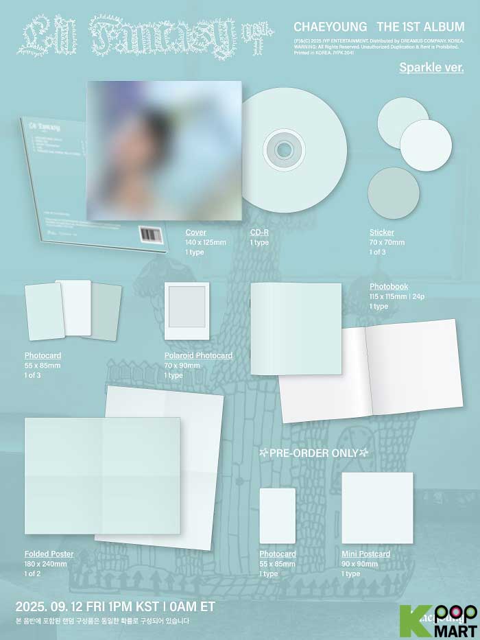 * Cover + CD + Photobook (24 P) + Random Photocard (Common, Polaroid) + Random Sticker + Random Folded Poster (On Pack)