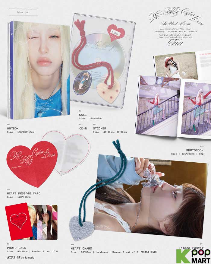 - Outbox + Case + CD + Photobook (84 P) + Sticker (2 P) + Heart Message Card + Random Photocard + Random Heart Charm + Folded Poster (On Pack)