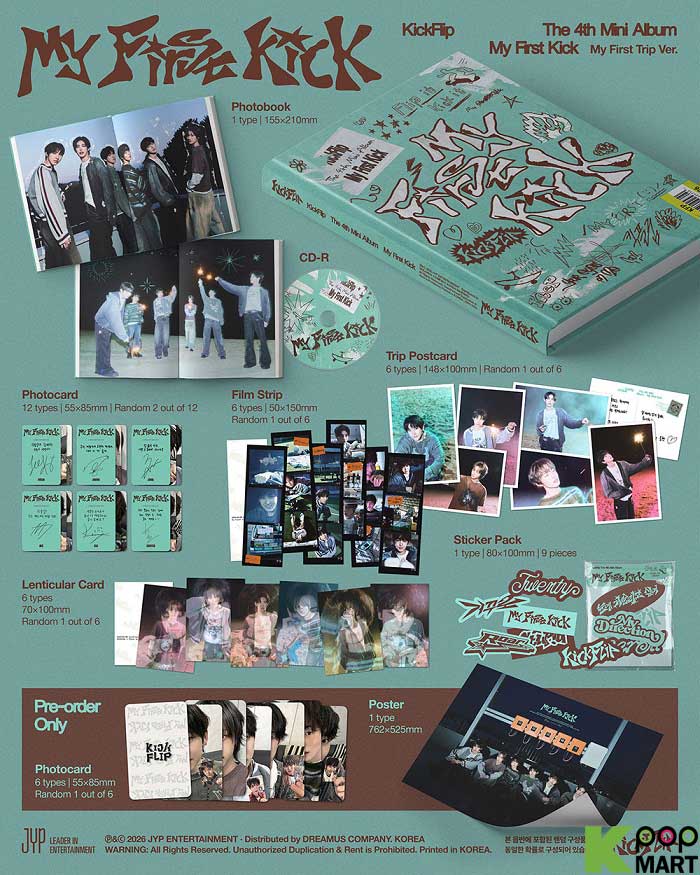 * CD + Photobook + Random Trip Postcard + Random Film Strip + Sticker Pack + Random Photocard (2 P) + Random Lenticular Card